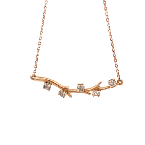 14K Rose Gold Branch Bar Diamond Pendant