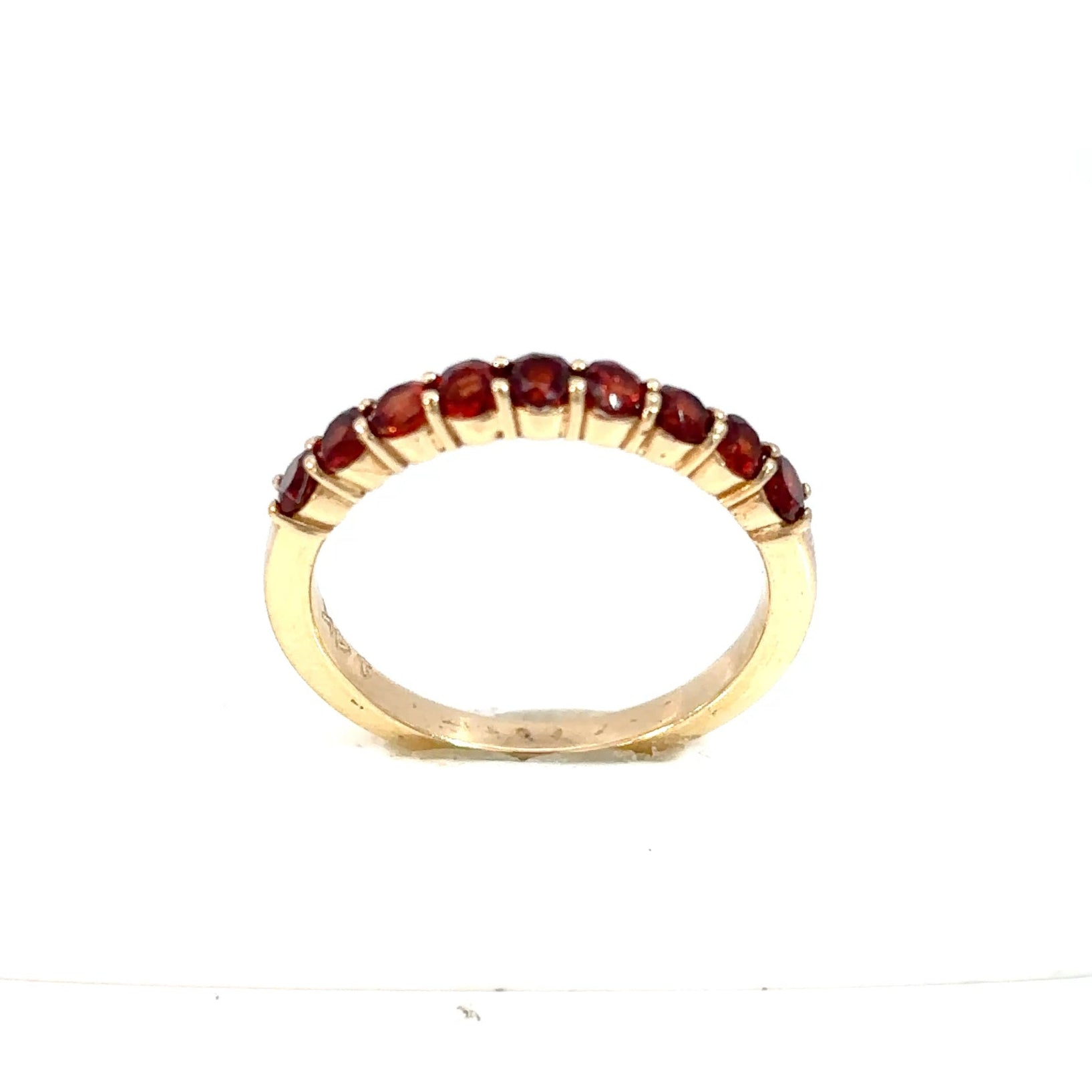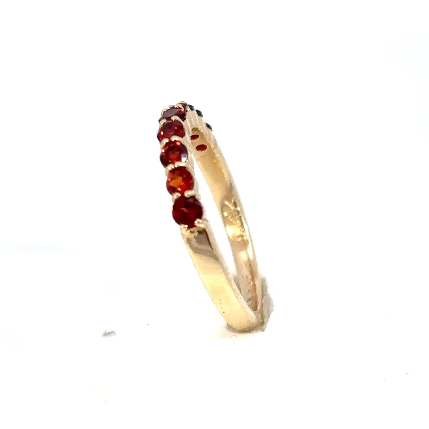 Indulge in luxury with our 14K Yellow Gold Garnet Half Eternity Band. Crafted with 9 dazzling garnet stones, this band exudes sophistication and elegance.