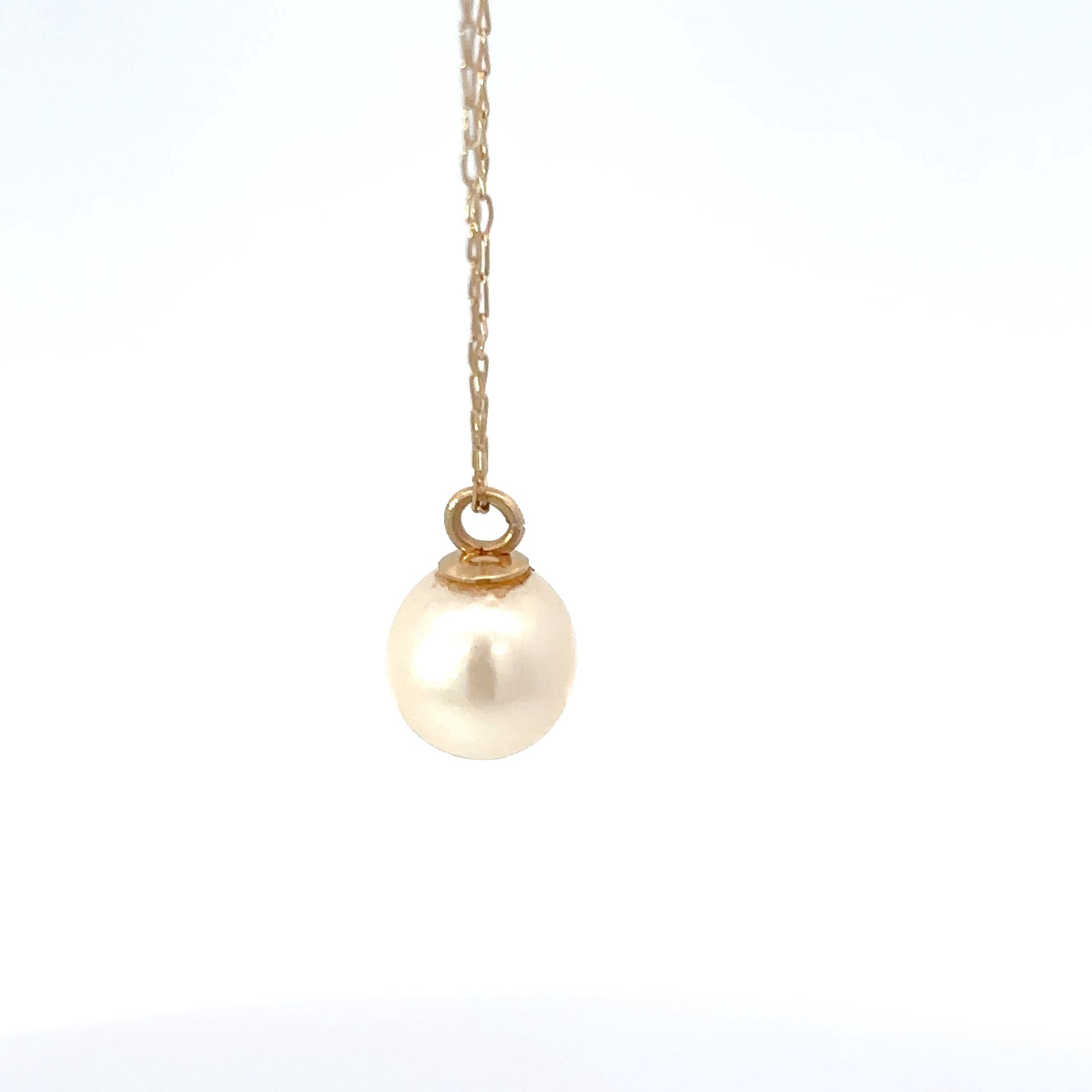 Crafted with 14K yellow gold, this pendant features a 7mm freshwater pearl.