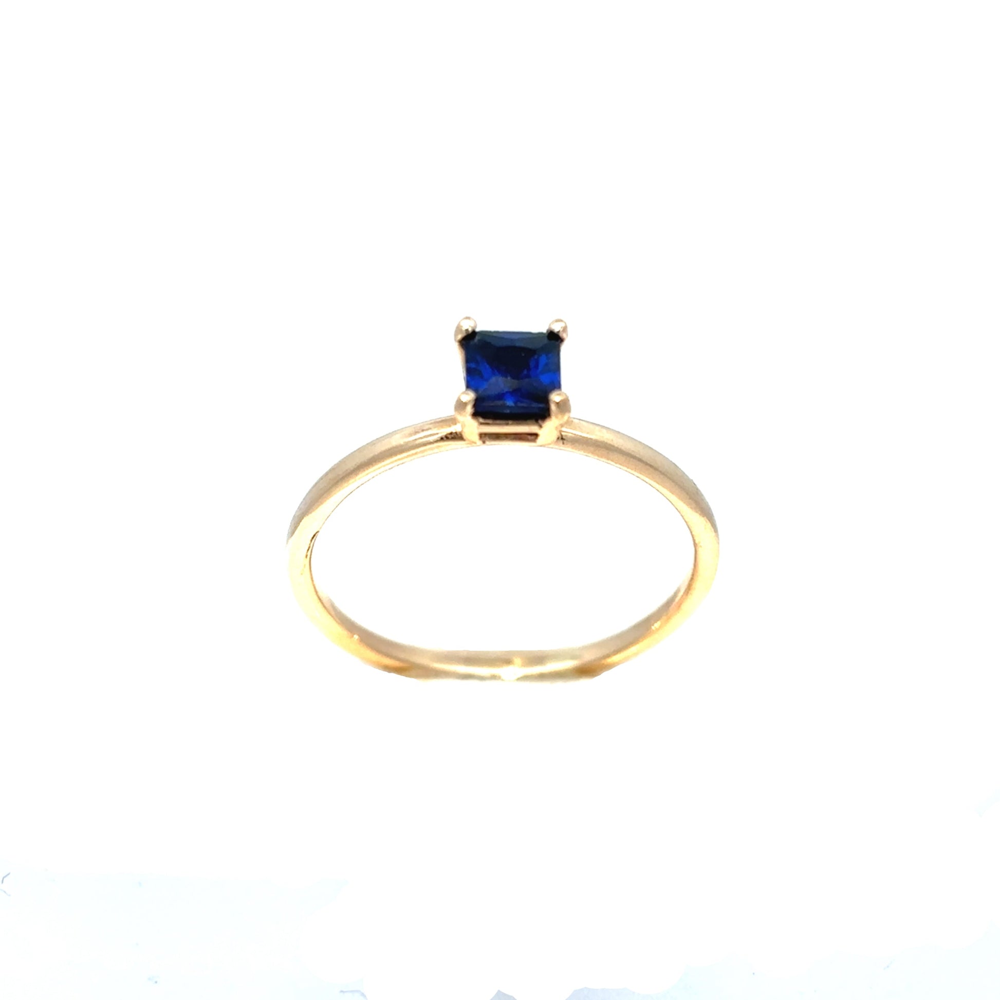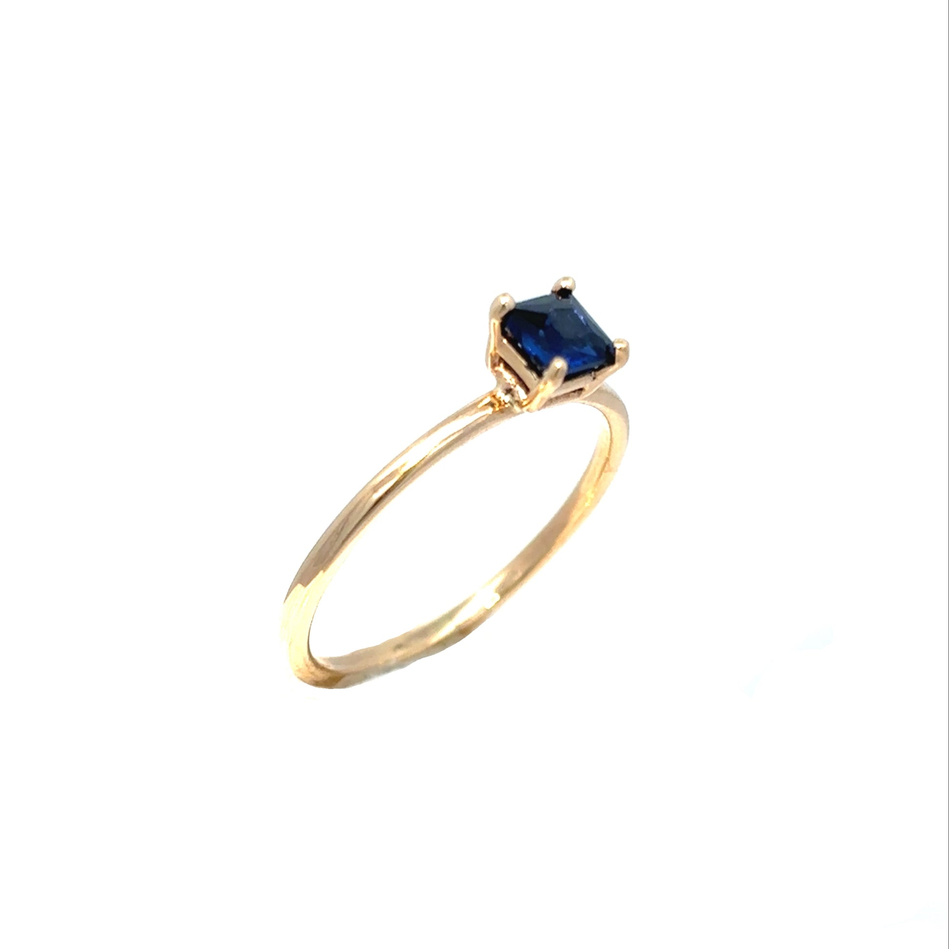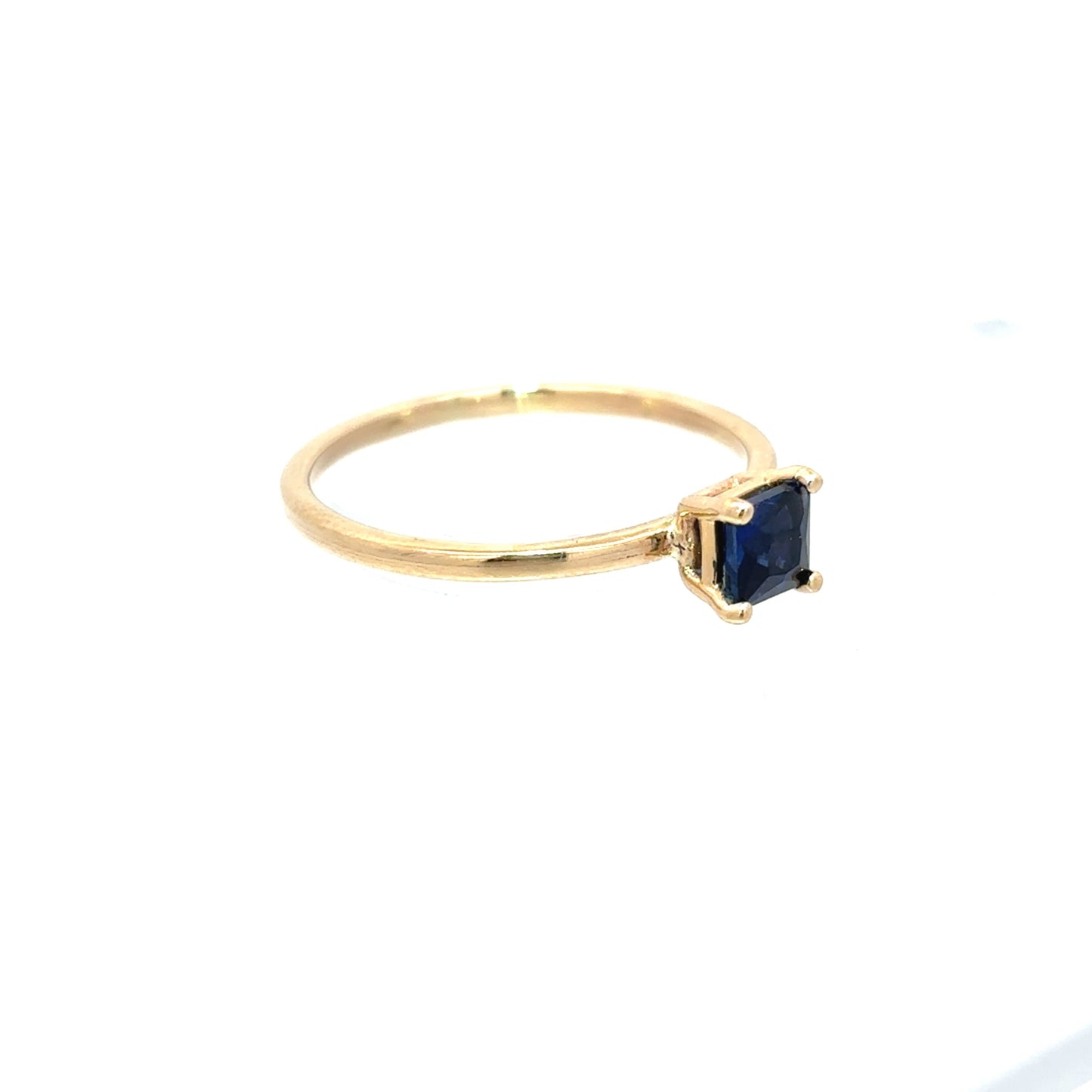 14K Yellow Gold Solitaire Ring with Princess Cut Lab Ctreated Sapphire