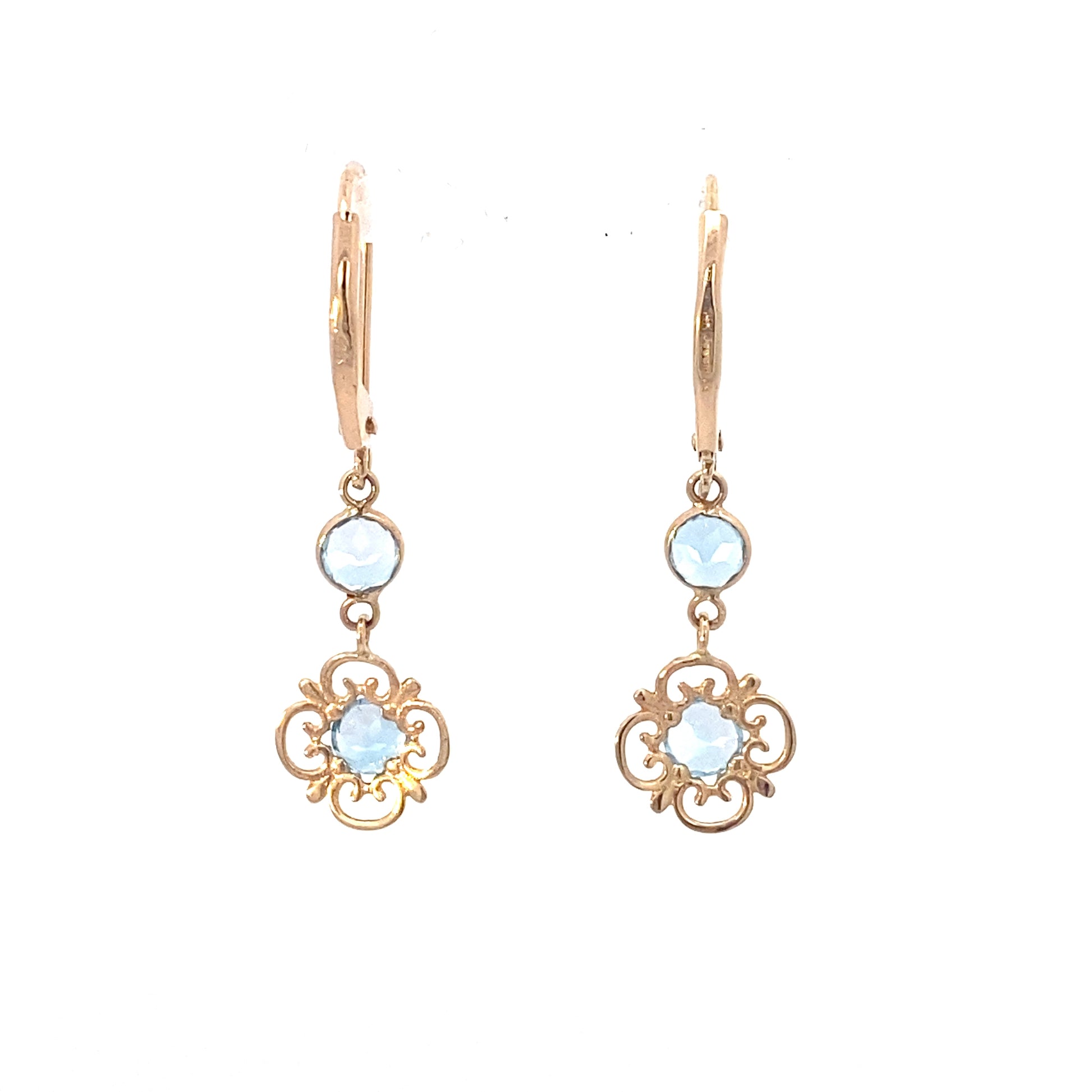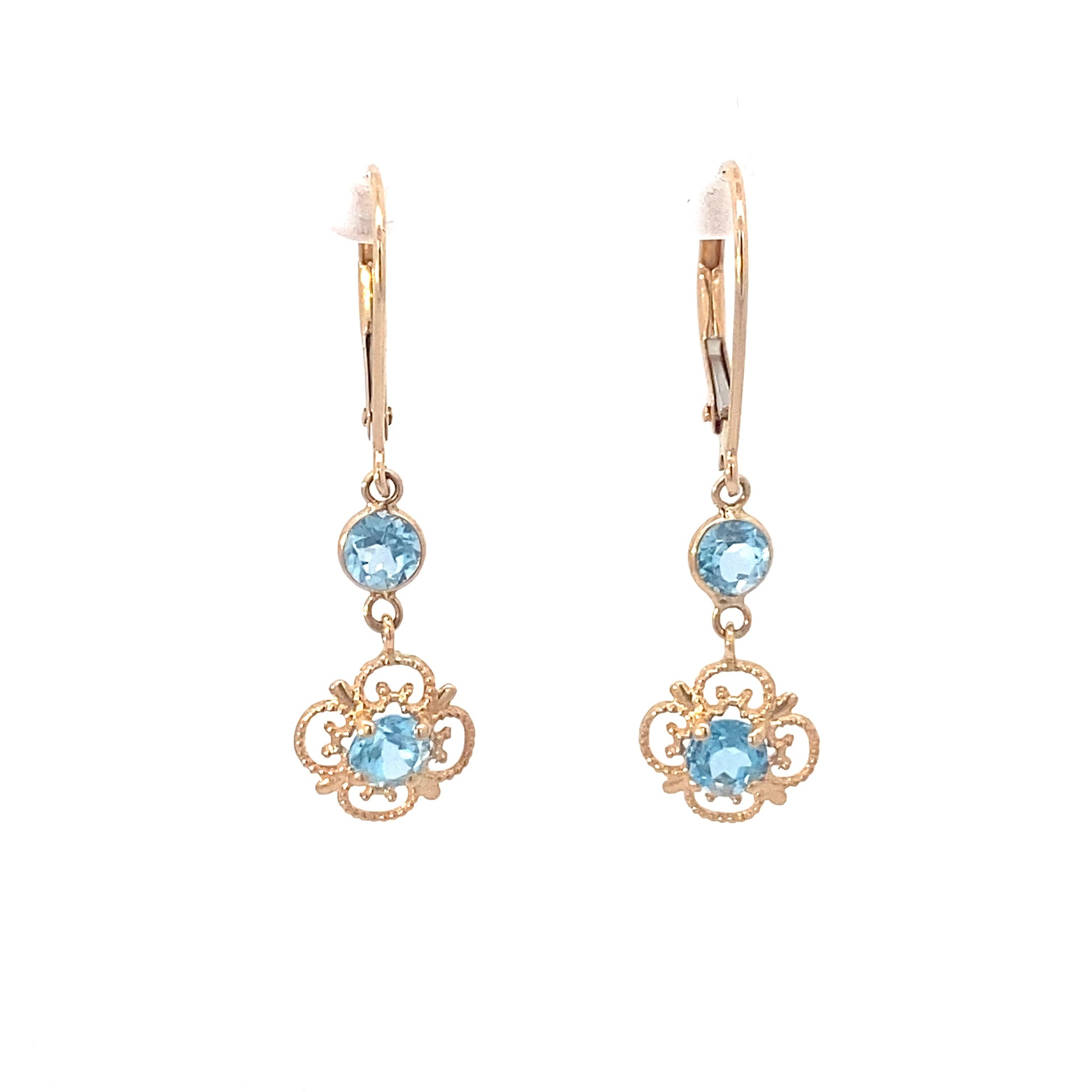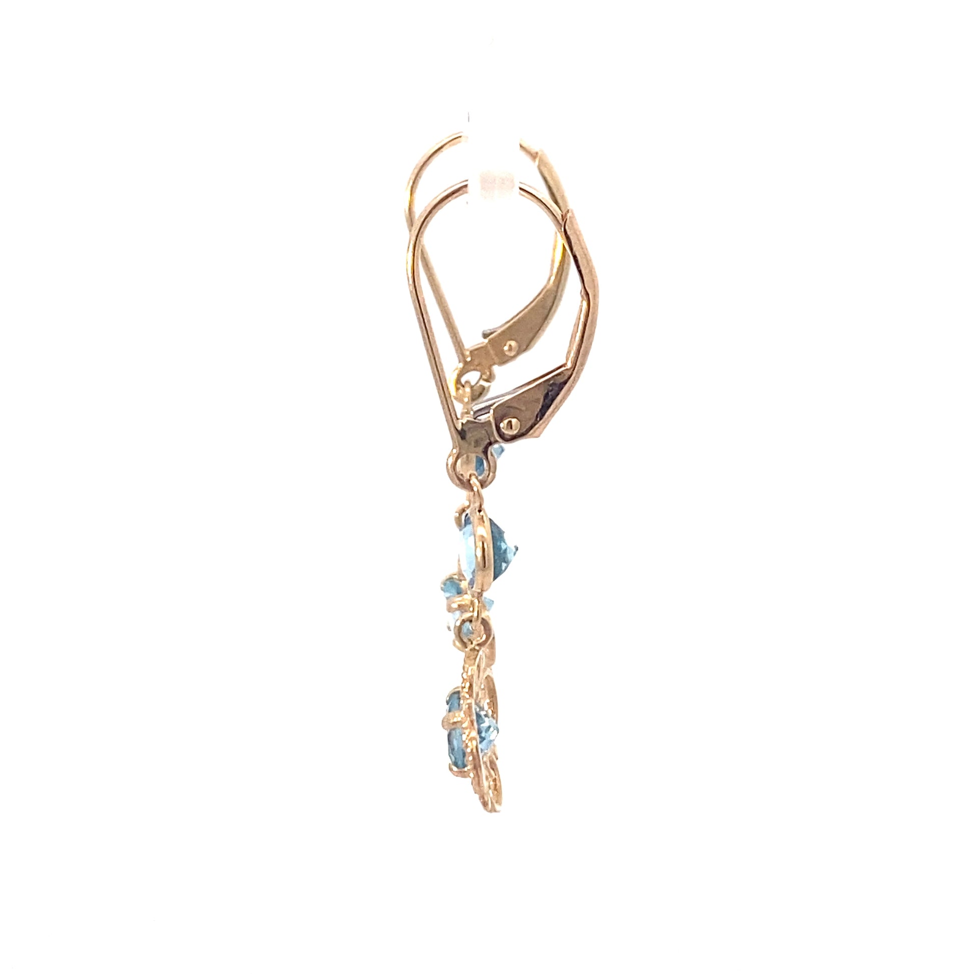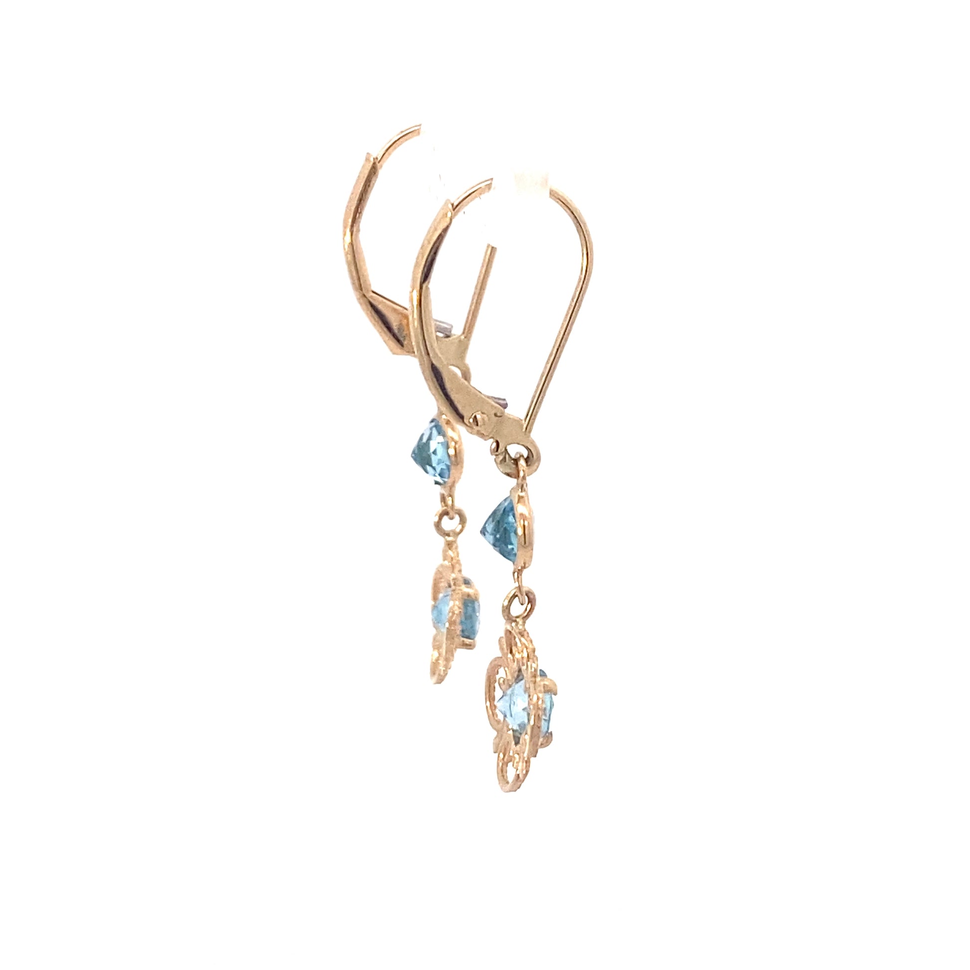 14K Yellow Gold Swiss Blue Topaz Clover Drop Earring